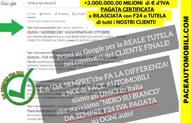 ✔️DA SEMPRE F24 IVA VERSATA sul TELAIO di OGNI AUTO,frase che SIAMO FIERI di poter SCRIVERE ed EVIDENZIARE! siamo GLI UNICI in ITALIA a scrivere NERO su BIANCO la FRASE: